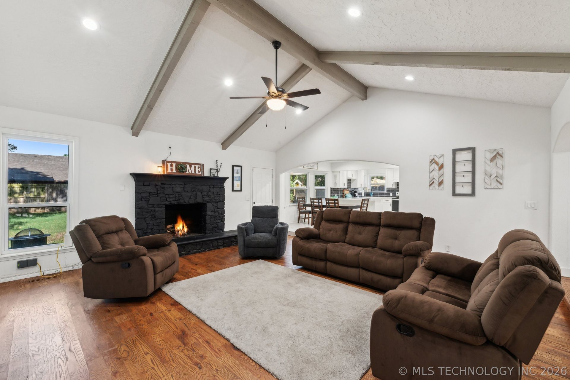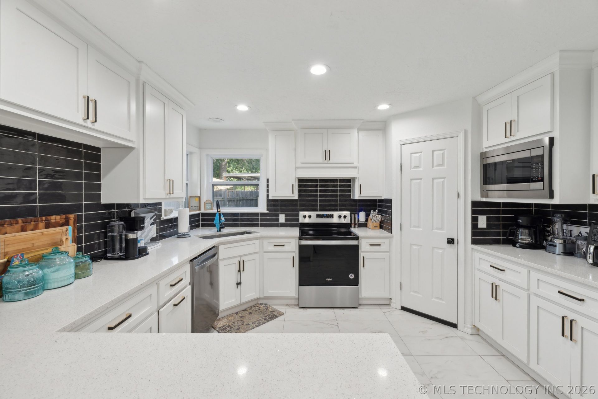 Broken Arrow Stone Cottage One Level: Complete Re-model of house, bathrooms & kitchen in 2021 includes: roof, kitchen appliances, quartz countertops throughout, custom cabinets, fixtures. Beautiful real hardwood flooring in living room & hallway. Stone Fireplace. Recent extension of back patio cover. Floor ducts have rubberized coating. Newer energy efficient vinyl windows. Vaulted ceiling in large living room with fireplace. Lovely SouthPark Estates neighborhood near 101st & Elm. Round the corner from Leisure Park Elementary School. One level. Big, fenced backyard. Inside spacious laundry room.
